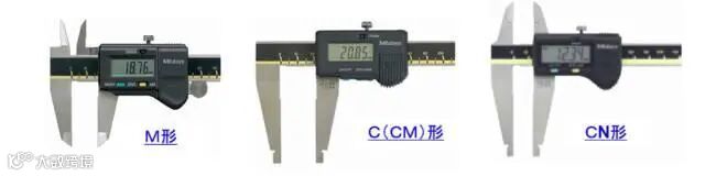 卡尺根据形状(内侧测量部),可分为M形、C(CM)圆弧刃量爪形、CN(刀刃)形三类。