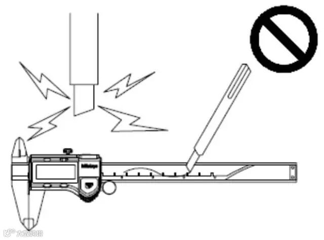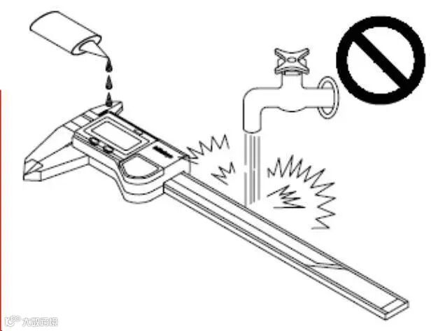 划伤数显卡尺的主尺、或用电笔在上面写字等,会给电装部带来很大的干扰,从而造成故障。