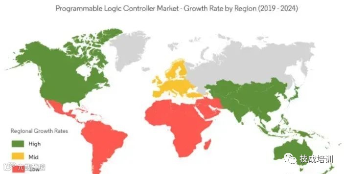 未来几年全球PLC市场需求增长情况。由于欧洲已经是非常发达的工业国家,对PLC的需求增长率呈现中等水平,而中国和印度的需求增长率很高。