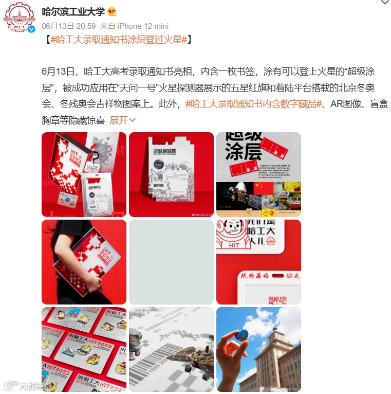 那首先肯定先说下这回上了热搜被夸的哈工大录取通知书了。