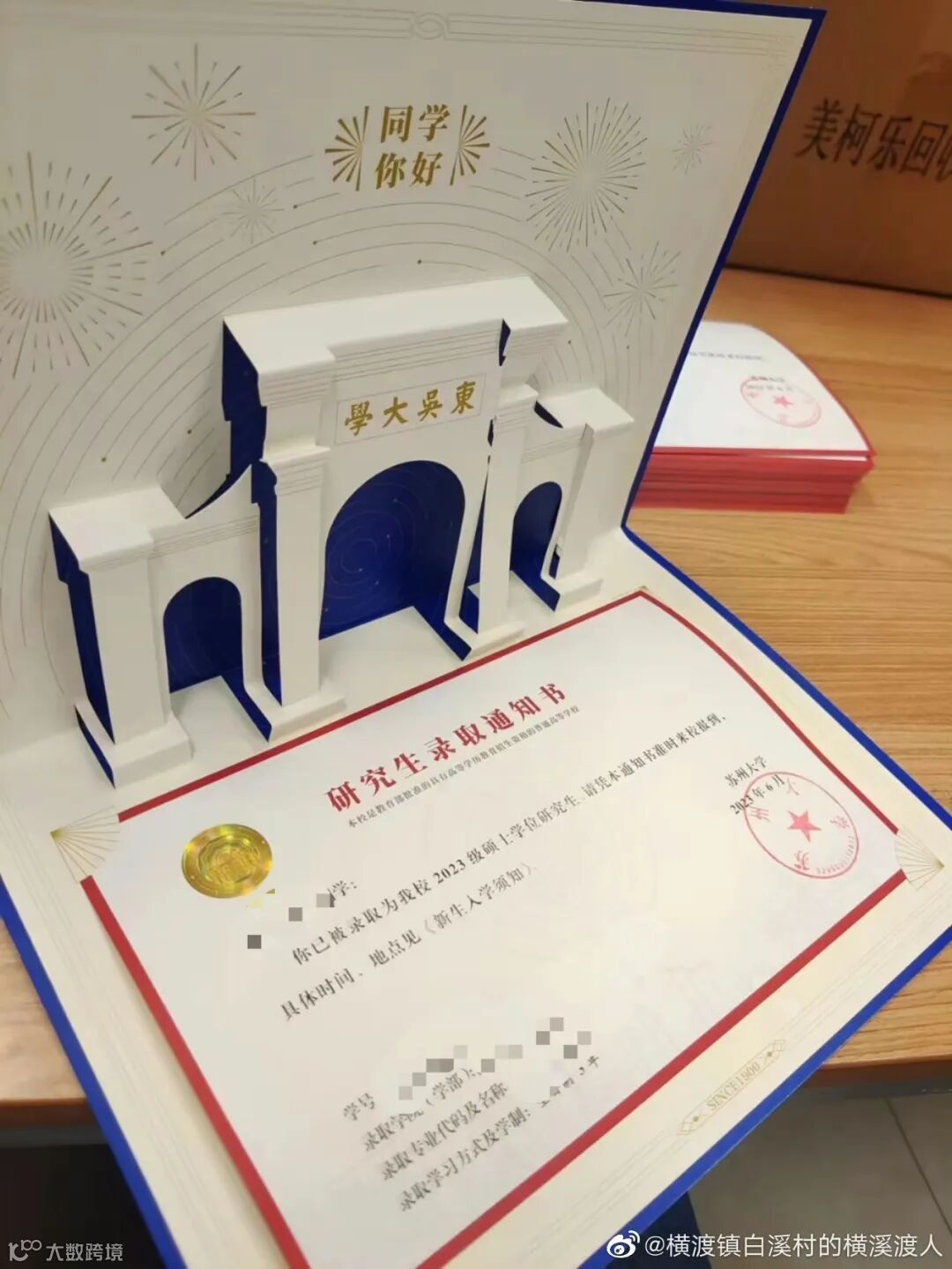 今年的本科录取通知书还没有出炉,但是研究生的已经有网友分享出来了。