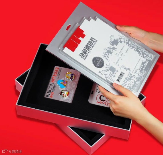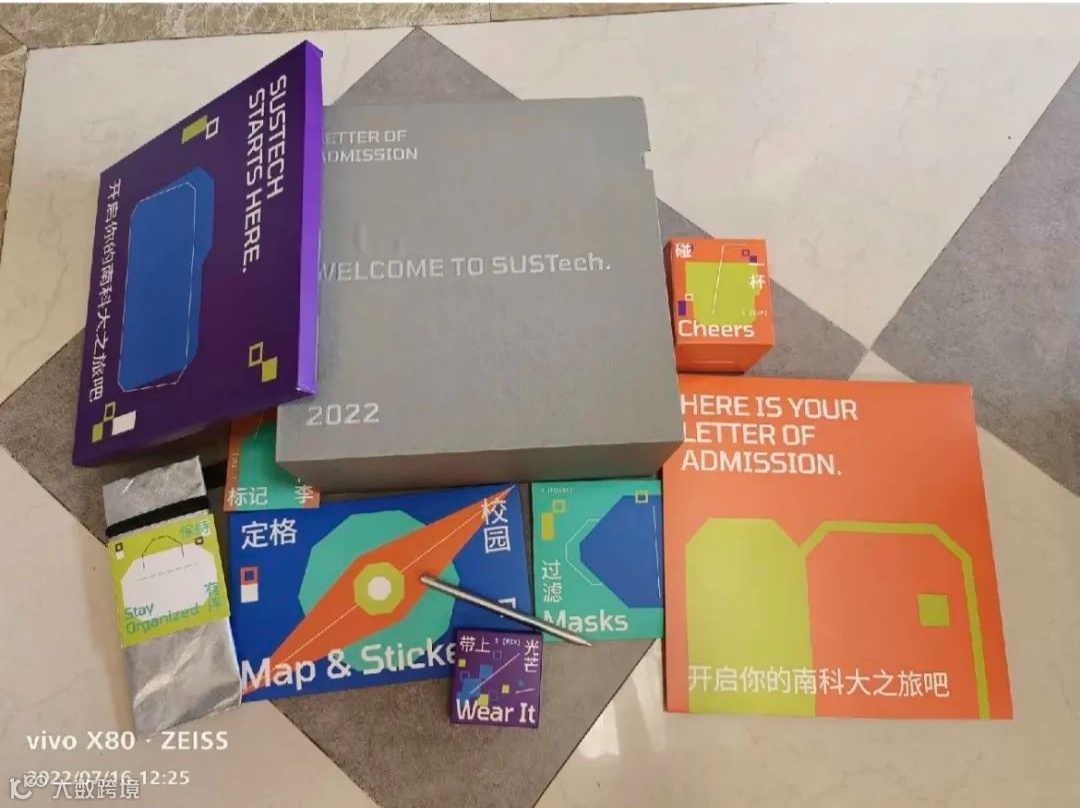 礼盒整体由两部分构成:一是包含永恒笔、水杯等的周边;一是录取文件相关资料。