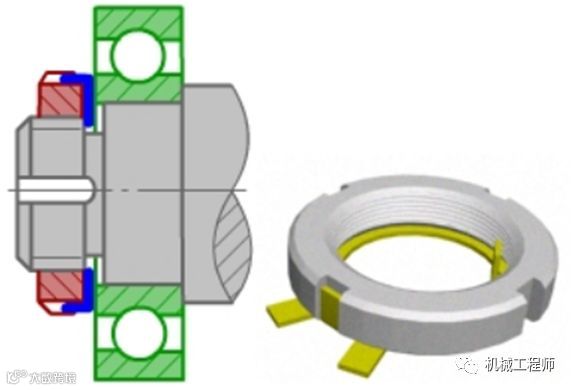 固定可靠,可以承受较大的轴向力,能实现轴上零件的间隙调整。