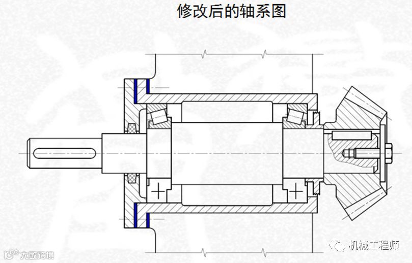 这种方法是利用轴肩和端盖的挡肩单向固定内、外圈,每一个支撑只能限制单方向移动,两个支撑共同防止轴的双向移动。