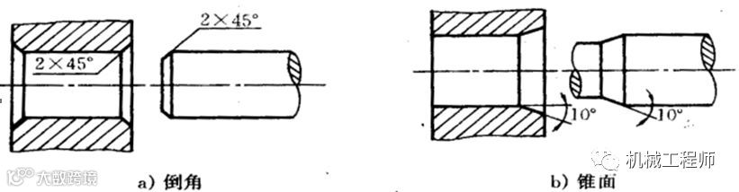 为了便于装配,轴端应加工出倒角(一般为45º),以免装配时把轴上零件的孔壁擦伤