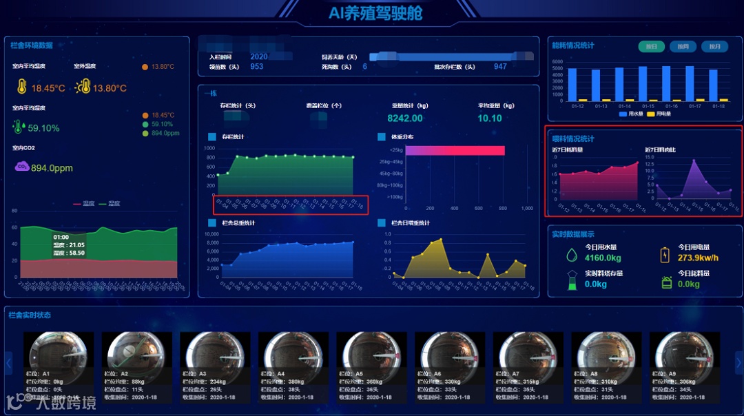 湿度、氨气浓度、二氧化碳浓度、光照、声音以及动物的养殖指标等数据进行不同区域分析,能够帮助养殖端找到养殖场管理和生物安全防控的最优解。”