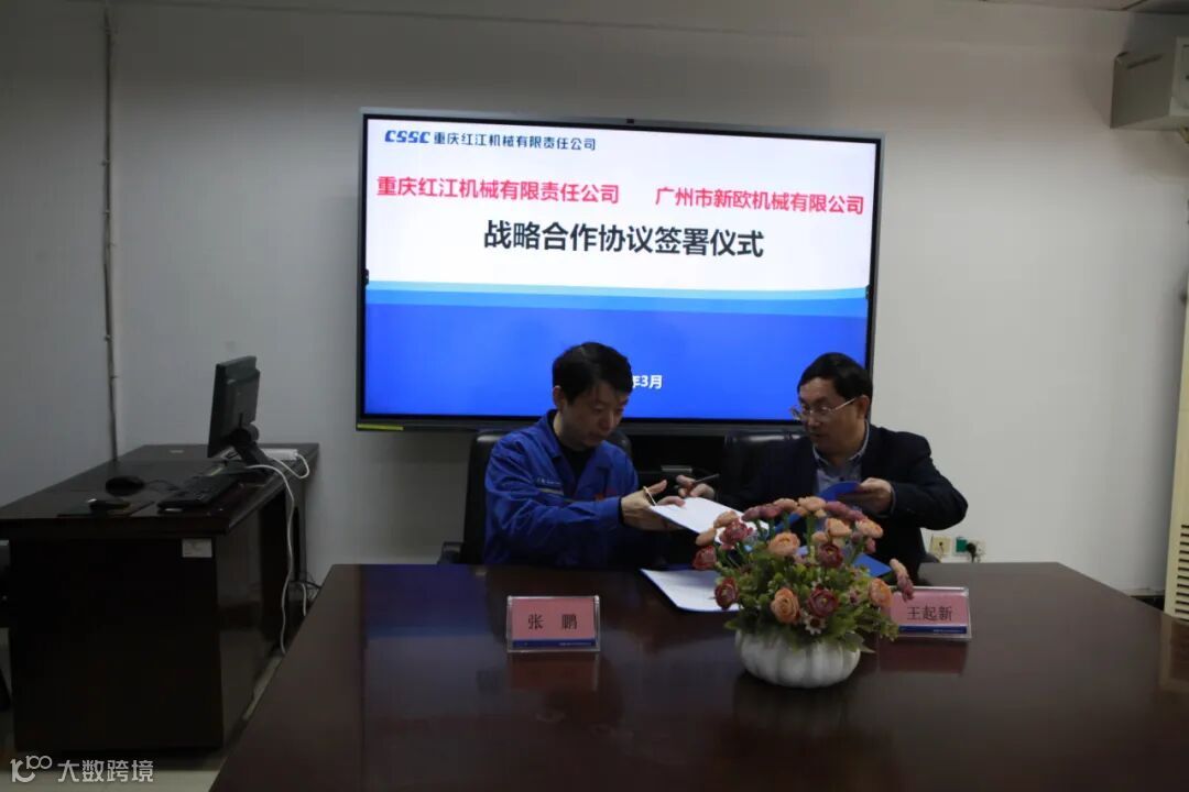 3月30日,重庆红江机械有限责任公司(简称重庆红江)与广州市新欧机械有限公司(简称新欧机械)共同举办的“联合实验室” 签约仪式正式召开。重庆红江党委副书记、副总经理张鹏,技术中心副主任陈超、实验室主任雷友军与新欧机械董事长王起新、常务副总经理侯小华、售后部长徐磊、新液压区块链总经理陈黄河等出席签约仪式。