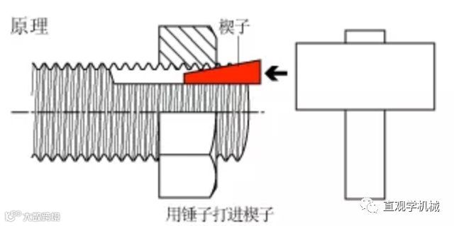 在螺母与螺丝之间揳入楔子以发挥防止松动的作用