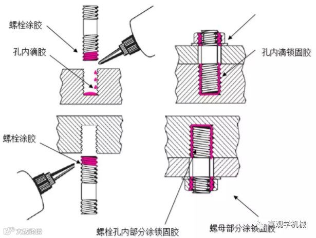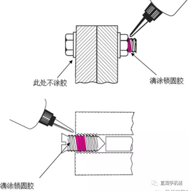 对于预装配型螺纹紧固件(如可调螺钉):装配并上紧至规定力矩后,将锁固胶滴入螺纹啮合处,使胶液自行渗入即可。