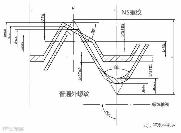 这样,30°楔形螺纹与传统60度螺纹,二者的法向压力之比≈12∶7,防松摩擦力相应地增加了。30°楔形螺纹的楔形面还可以消除普通螺纹受力不均匀、脱扣咬死等问题。