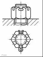 螺母拧紧后,把开口销插入螺母槽与螺栓尾部孔内,并将开口销尾部扳开,防止螺母与螺栓的相对转动。