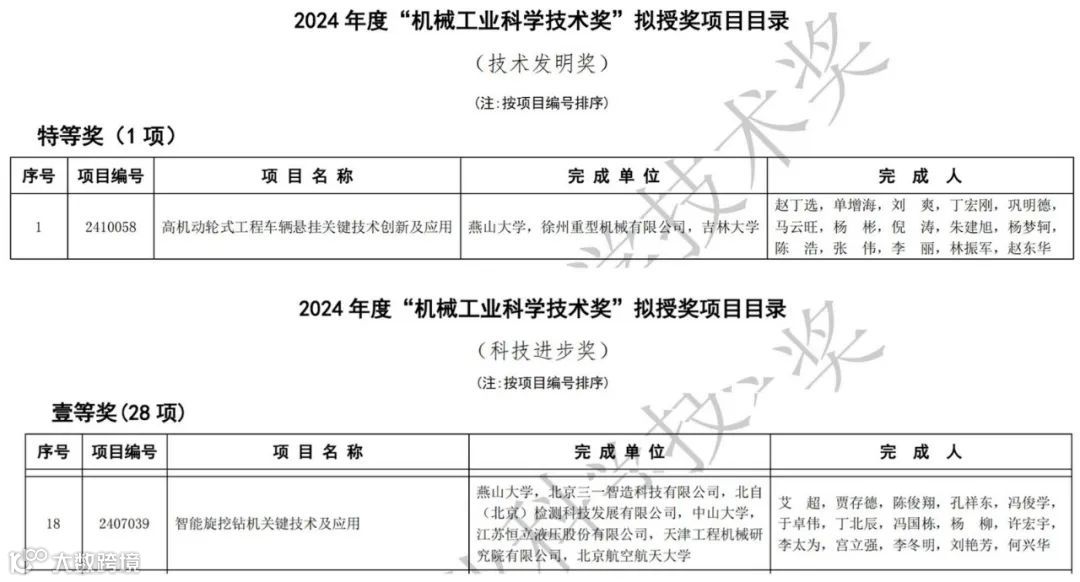 日前,2024年度“机械工业科学技术奖”表彰奖励项目正式公布。赵丁选教授主持完成的“高机动轮式工程车辆悬挂关键技术创新及应用”项目荣获技术发明奖特等奖,艾超教授主持完成的“智能旋挖钻机关键技术及应用”项目荣获科技进步一等奖。其中,技术发明奖特等奖是2024年度全国唯一授奖项目,也是燕山大学首次牵头荣获该奖项,实现了学校又一个重大历史性突破。