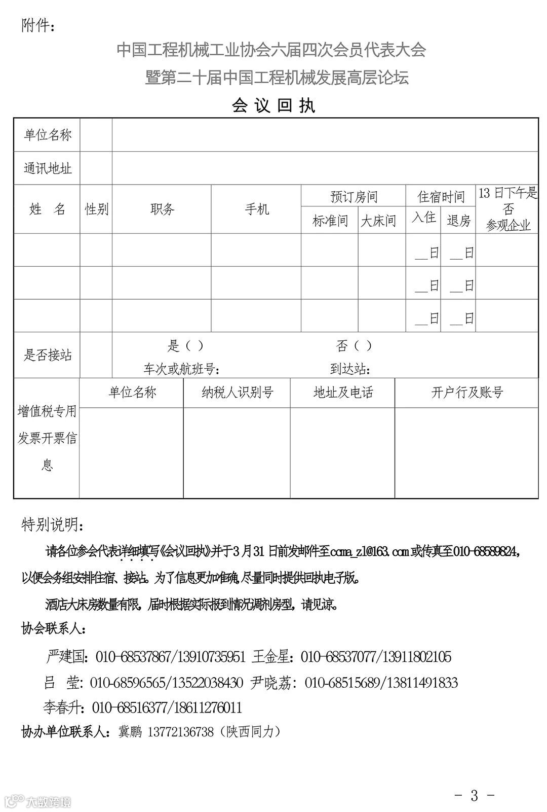 中国工程机械工业协会六届四次会员代表大会暨第二十届中国工程机械发展高层论坛会议回执.doc