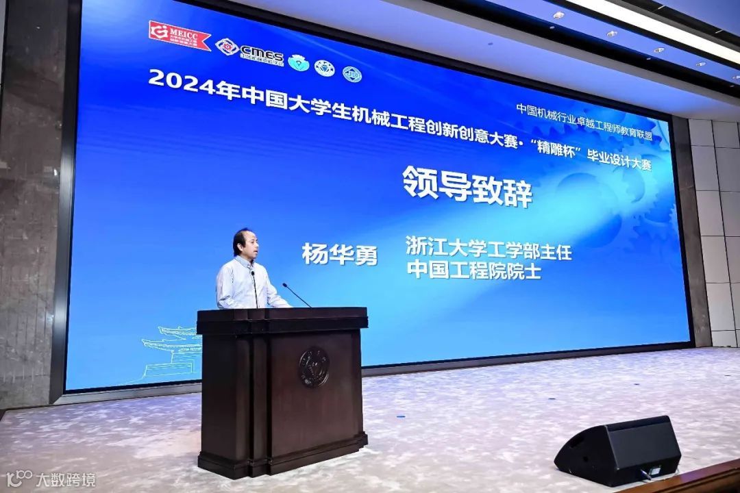 浙江大学工学部主任、中国工程院院士杨华勇代表浙江大学工学部和机械工程学科致辞。他首先对进入决赛的各高校参赛成果表示肯定,并为参赛学生的出色表现表示欣慰,向指导教师的辛勤付出与无私指导表示感谢。机械学科充满了挑战与机遇,离不开实践创新与勇于探索的精神,希望同学们通过本次大赛拓宽视野、收获成长,为未来职业规划打下坚实的基础。