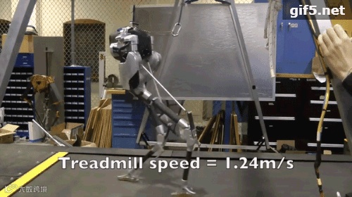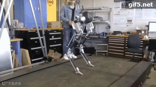 比如传送带突然加速,它能通过调节步伐大小与迈步频率跟上传送带的速度: