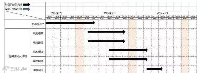 这两张是时间表,小项目:10W的售价、6周的开发周期,1个机构设计、1个电控设计、1个组装调试共三名人力(主要是新行业+新技术=试验机,所以投入产出比会比较不好看)。根据我的经验,近两年(2014~2015),一台中大型设备开发成本就需要:120W售价、10weeks的开发周期、2机构设计1电控设计3组装调试共七名人力。