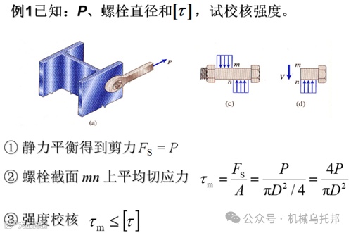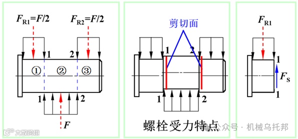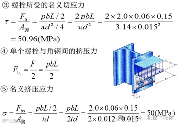 3)螺栓挤压,有可能把被联接构件端部豁开(一般将端部设计得充分长,抵御豁开力,因而对此不计算)。