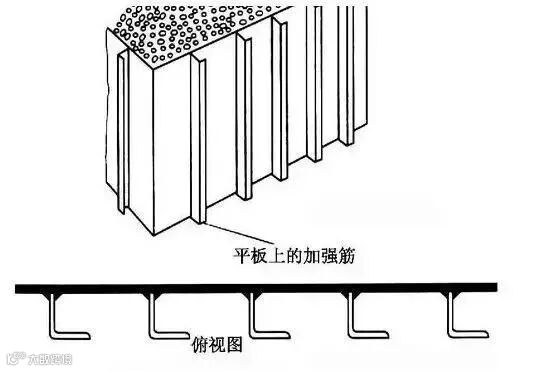 增强平板的刚性以承载负荷的标准方法是在平板上垂直焊接一系列的角钢,添加角钢加强筋以增强平板刚性,如图所示。