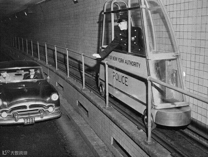 1955年,这种微型电动窄轨列车安装在隧道中,监控行车速度▼