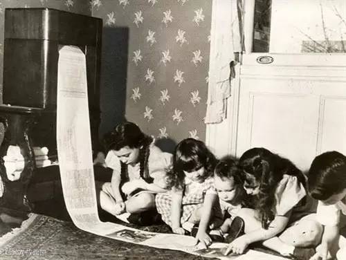 1938年,第一份无线传输的报纸从纽约WOR电报站发出,图像显示孩子们正在阅读密苏里报纸的儿童版面▼