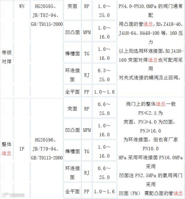 12种法兰类型及密封面形式