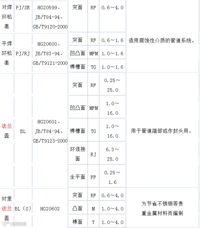 突面(RF)、凹凸面(MFM)、榫槽面(TG)、环连接面(RJ)