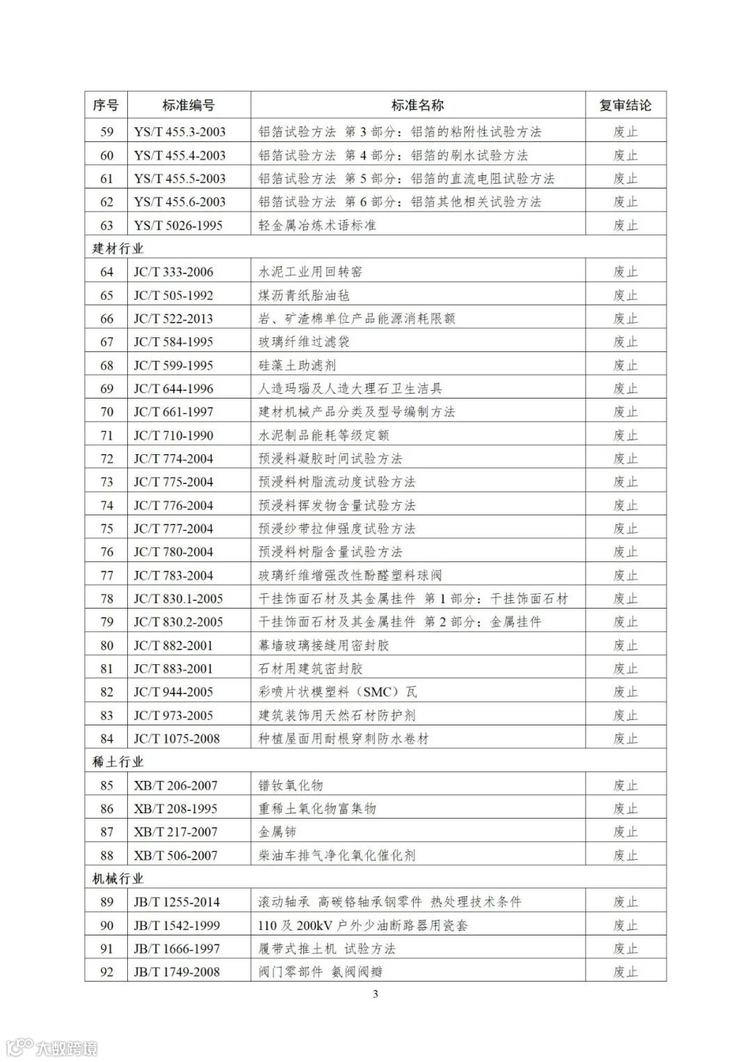 3.废止的行业标准清单