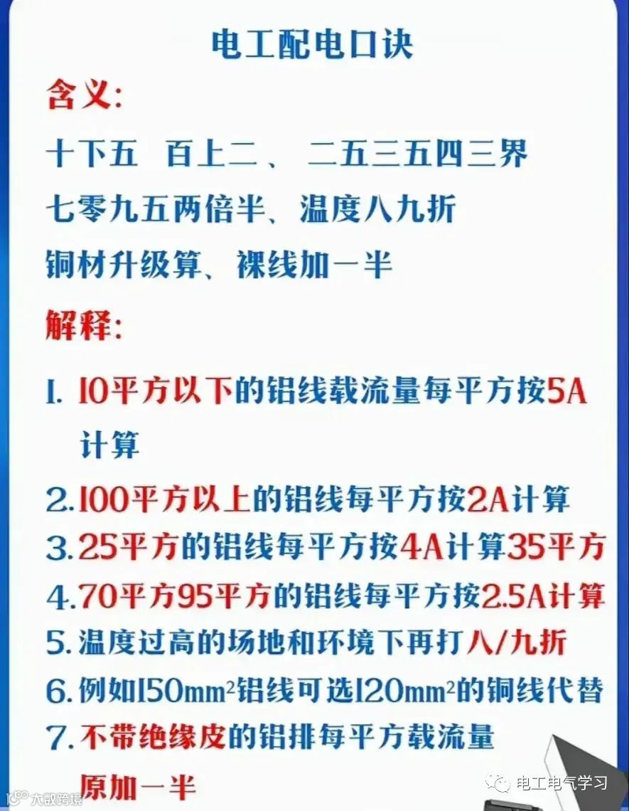 12、电工配电口诀