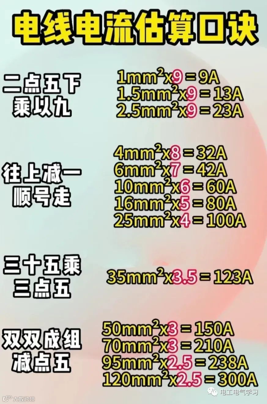 3、电线电流估算口诀