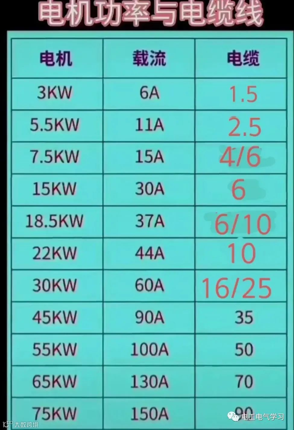 5、知道电机功率怎么选择电缆线大小