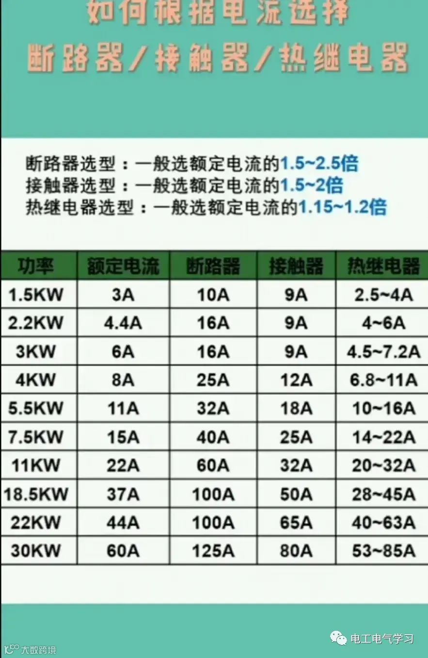 2、如何根据电流选择断路器、接触器、热继电器