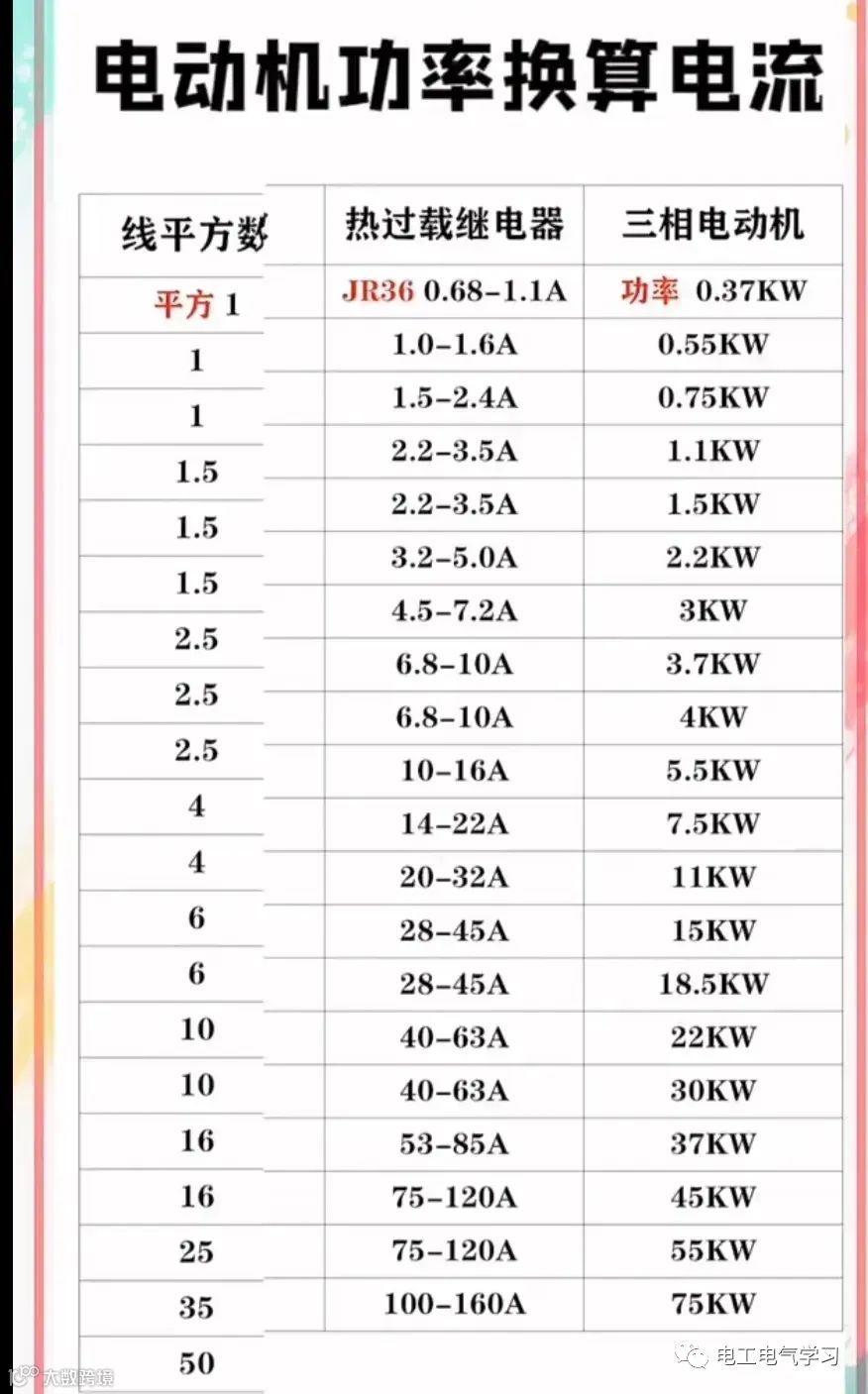 18、电动机功率换算电流