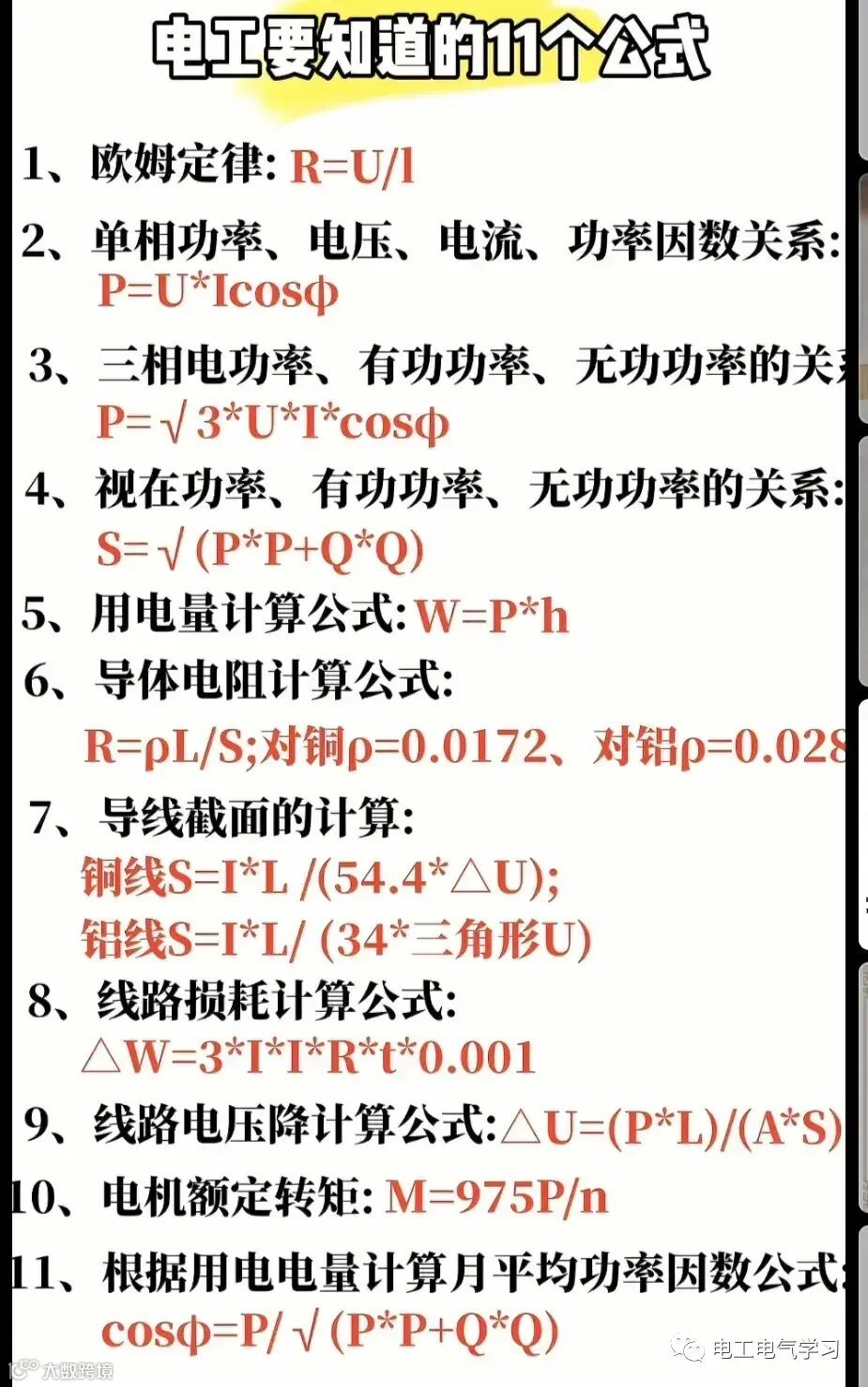 16、电工要知道的11个公式