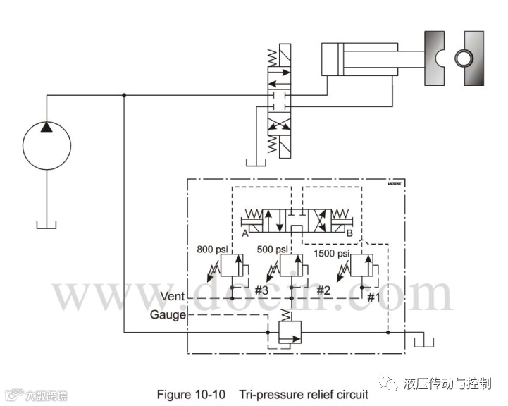 三级压力溢流阀回路