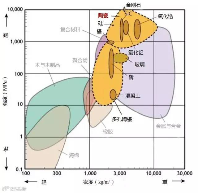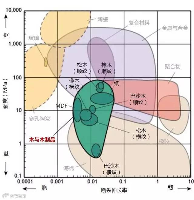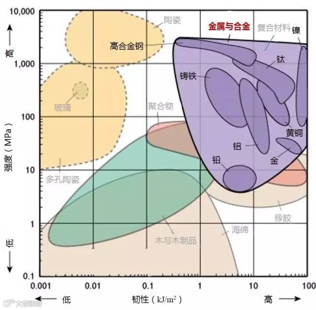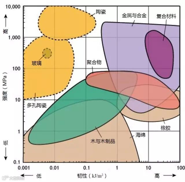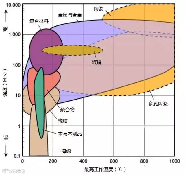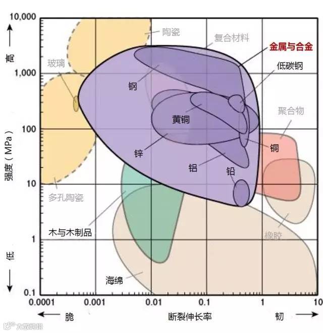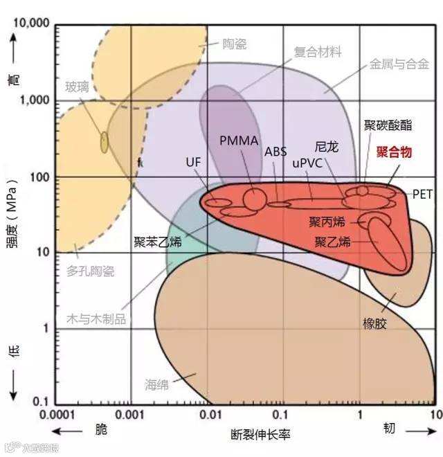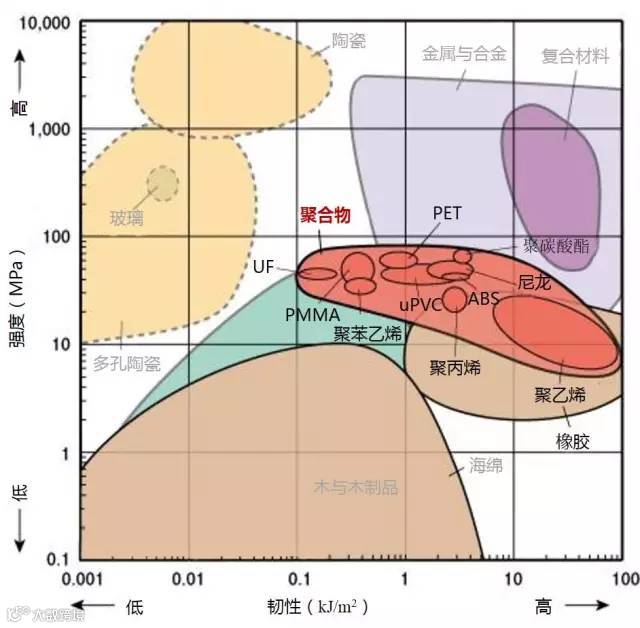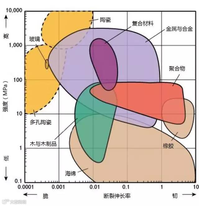 1、下图标识的强度为拉伸强度,除了陶瓷为抗压强度。