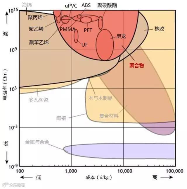 1、下图主要用于需要较低的价格以及良好的电绝缘性(如插头外壳)或良好的导电性(例如电力电缆)组件时选材参考。