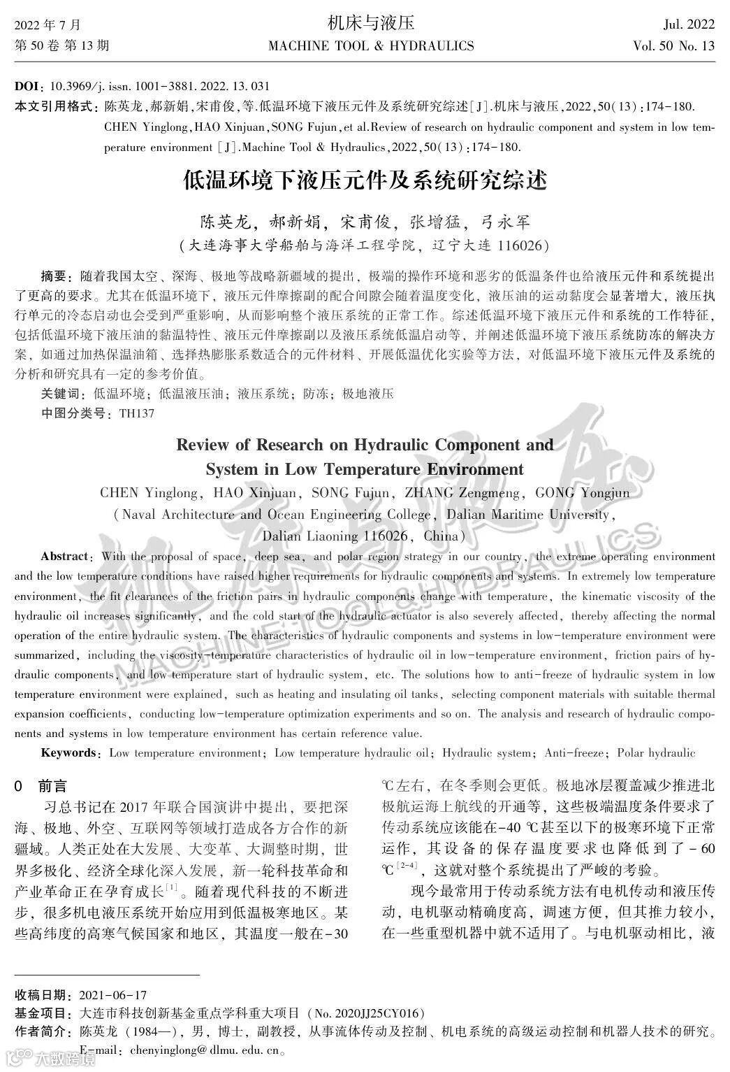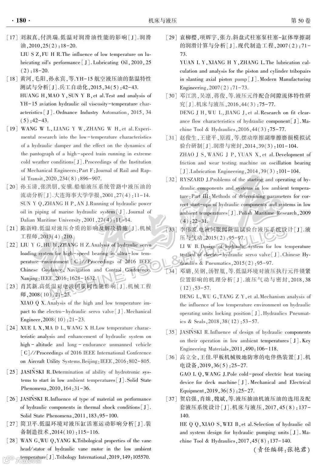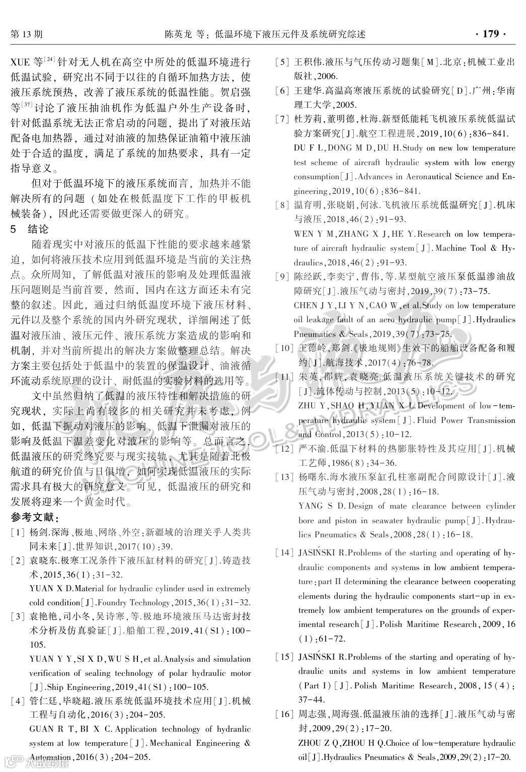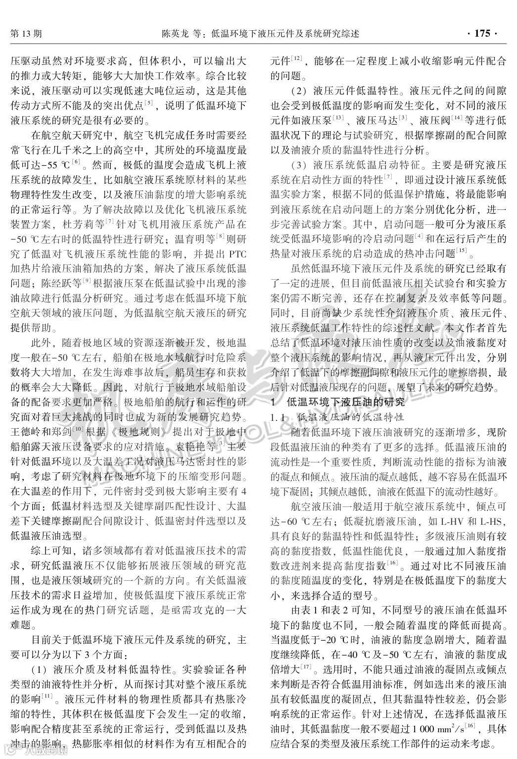 低温环境下液压元件及系统研究综述
