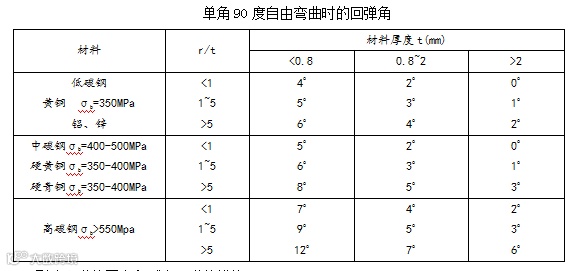 (1)材料的力学性能 回弹角的大小与材料的的屈服点成正比,与弹性模量E成反比。对于精度要求较高的钣金件,为了减少回弹,材料应该尽可能选择低碳钢,不选择高碳钢和不锈钢等。