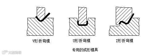常用折弯模具常用折弯模具,如下图。为了延长模具的寿命,零件设计时,尽可能采用圆角。