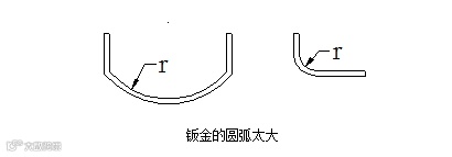 (2)相对弯曲半径r/t 越大,则表示变形程度越小,回弹角Δα就越大。这是一个比较重要的概念,钣金折弯的圆角,在材料性能允许的情况下,应该尽可能选择小的弯曲半径,有利于提高精度。特别是注意应该尽可能避免设计大圆弧,如下图所示,这样的大圆弧对生产和质量控制有较大的难度: