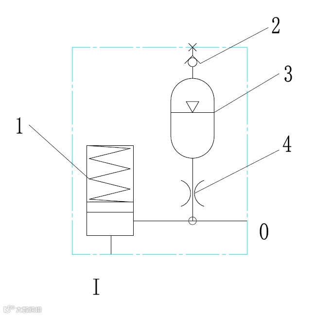1-弹簧蓄能器;2-充气单向阀;3-蓄能器