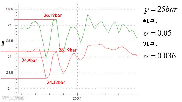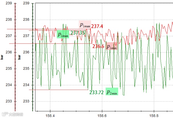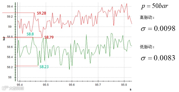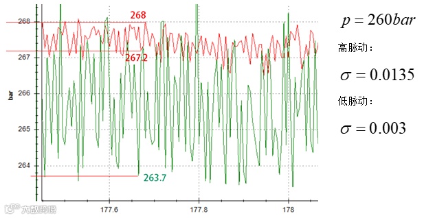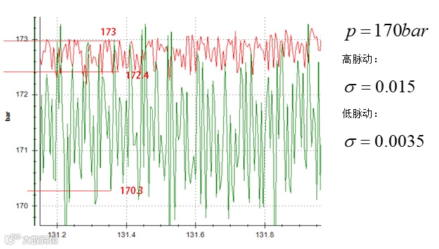 2、从脉动频率上,可以算出泵的转速,证明了,每个柱塞带来的脉动。