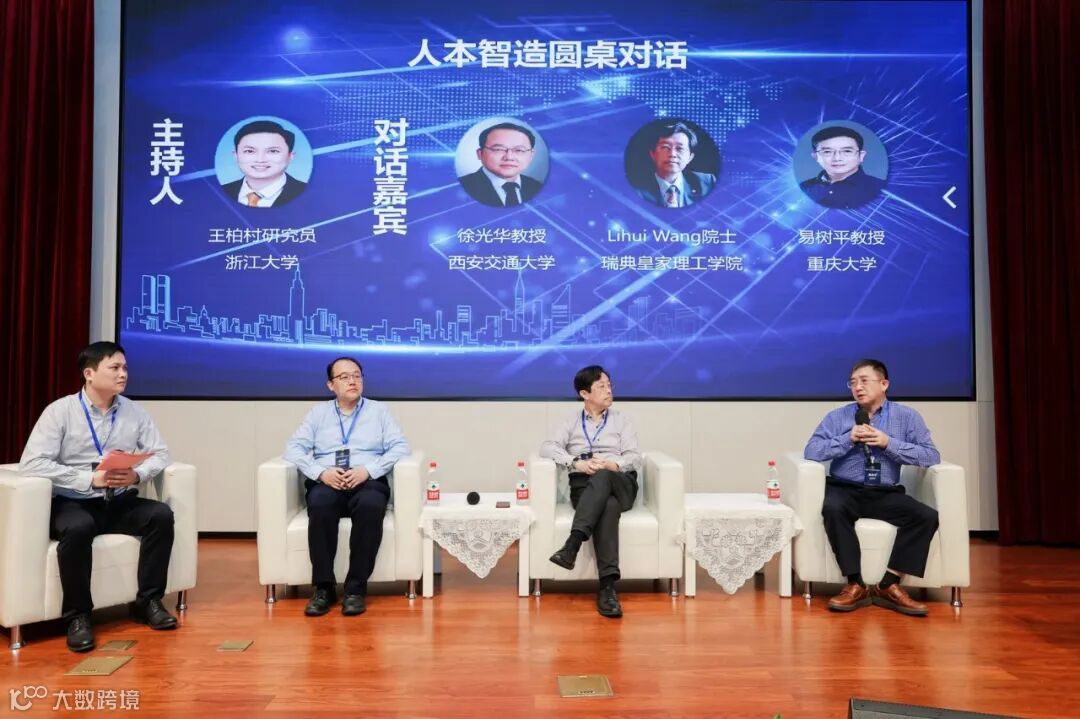 会议报告结束后举办了人本智造圆桌对话,由王柏村研究员主持。瑞典皇家理工学院Lihui Wang院士、重庆大学易树平教授、西安交通大学徐光华教授畅谈人本智造的现状和未来,对现场提问进行了深入浅出的解答,对青年学者和同学们寄予了殷切期望。