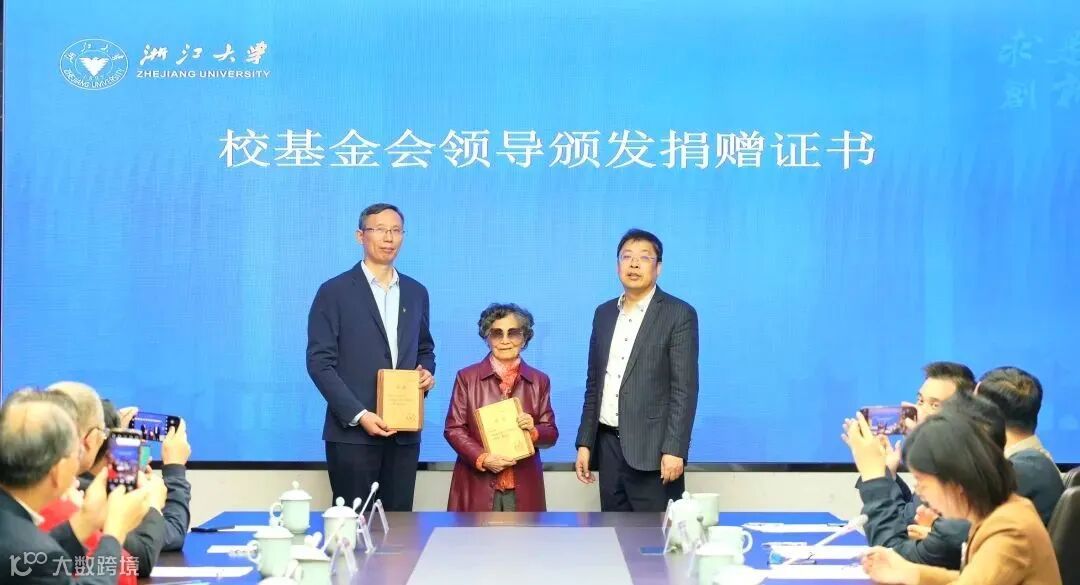 丁海忠代表浙江大学教育基金会向张光琼教授,沈波、章国巨两位校友颁发捐赠证书,向张光琼教授和章国巨校友颁发铭牌。