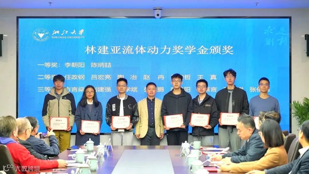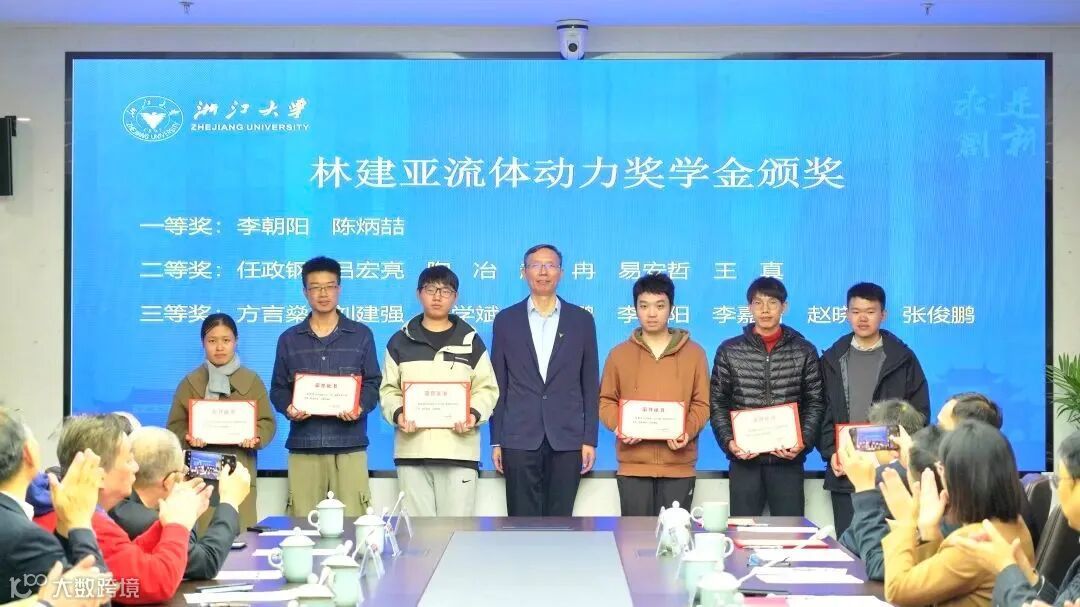 沈波、章国巨校友分别为林建亚流体动力奖学金获得者颁奖。