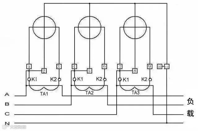 3、三相四线电度表互感器接线