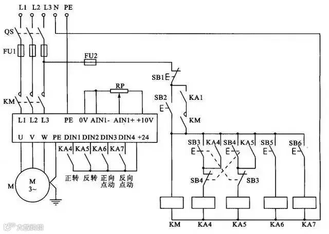 25、使用变频器的异步电动机可逆调速系统控制线路