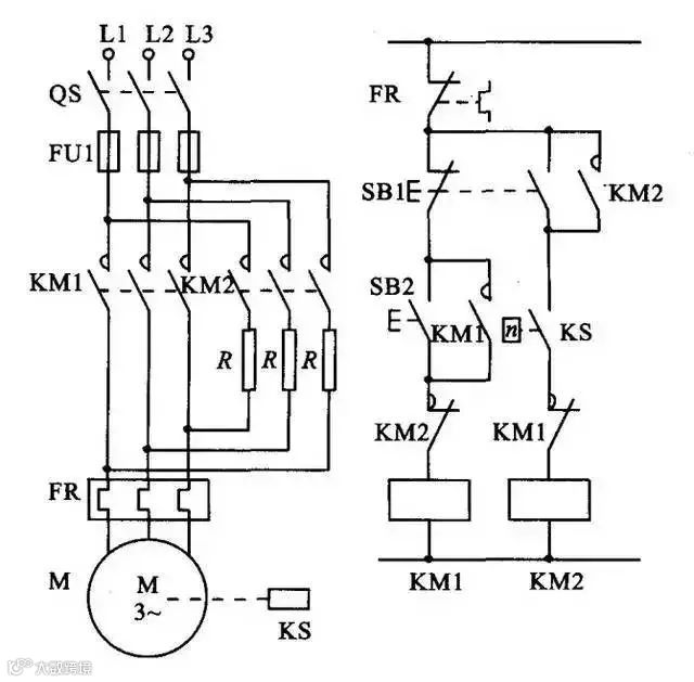 19、具有反接制动电阻的可逆运行反接制动的控制线路