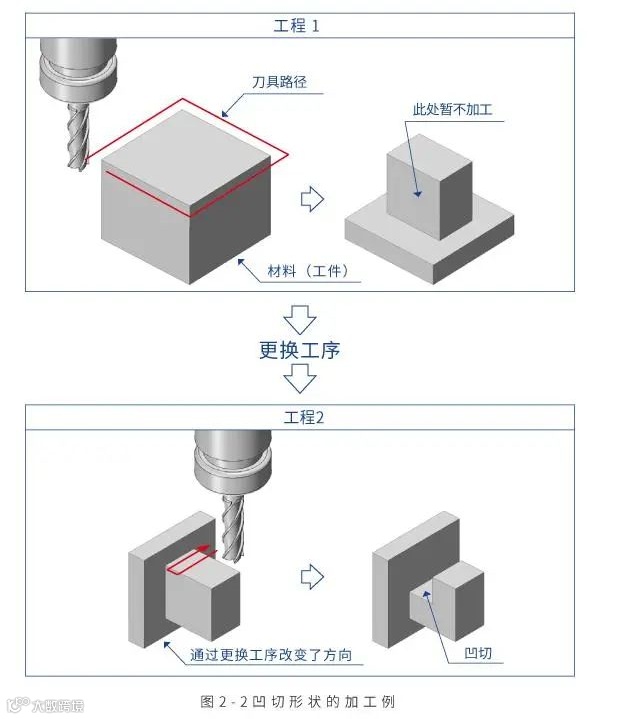 凹切形状不是全都无法实现的。机加工原理上也存在无论如何都无法加工的形状。典型的例子参见图3-1。