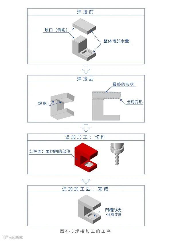尤其要记住,焊接是一种工件会变得极其高温并发生变形的加工方法。如果要求精度,则需要在焊接后通过追加加工,切削所需的表面。